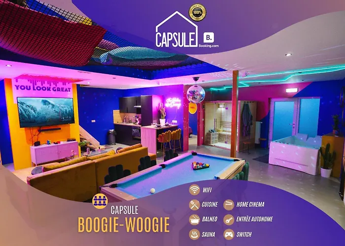 Capsule Boogie-Woogie - Jacuzzi - Sauna - Billard - Jeux - Ecran Geant - Filet Suspendu - Netflix